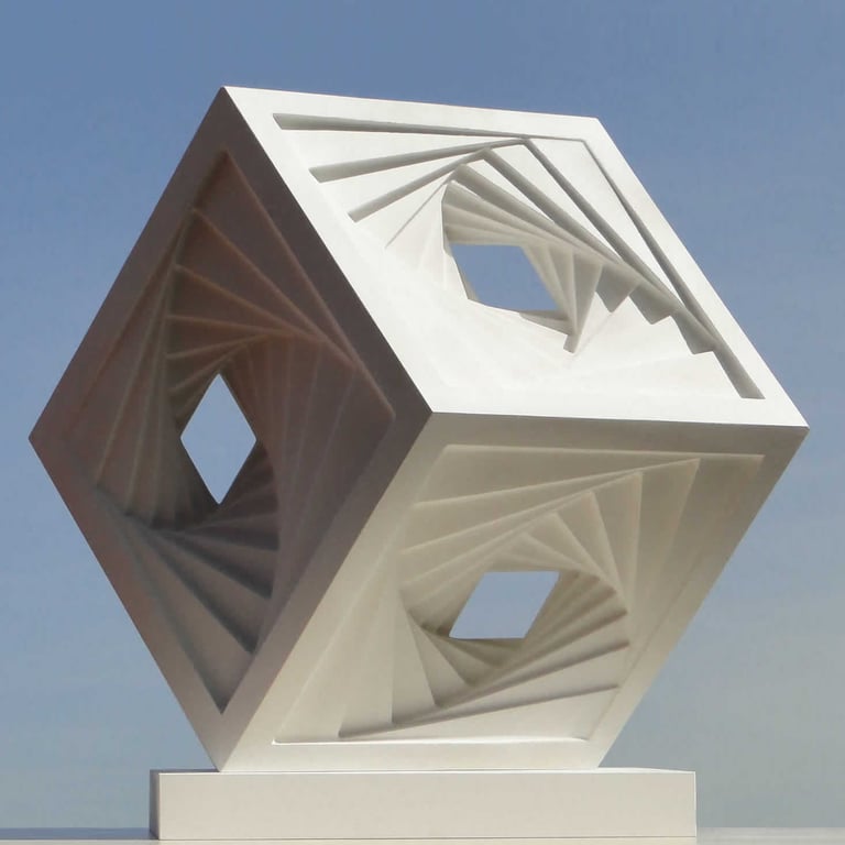 Radoslav Sultov (b. 1976) earned his Master’s degree in Sculpture from the National Academy of Arts in Sofia, followed by advanced studies in Spain and Sweden. His works are displayed at public spaces and open collections in over 20 countries worldwide. His most notable pieces include Spiral Cube in front of the BenQ headquarters in Taipei, Taiwan; Rivergate in Grand Bay-Westfield, Canada; Digital Rhapsody outside the Philharmonic in Opole, Poland; and Fragment of a Wave in the International Sculpture Park in Haining, China. Radoslav Sultov is renowned for his ability to intertwine mathematics and art, creating sculptures that speak of eternity and the continuous flow of time and space. Crafted from marble and granite, his works hint at the labyrinth of the beautiful and profound infinity.